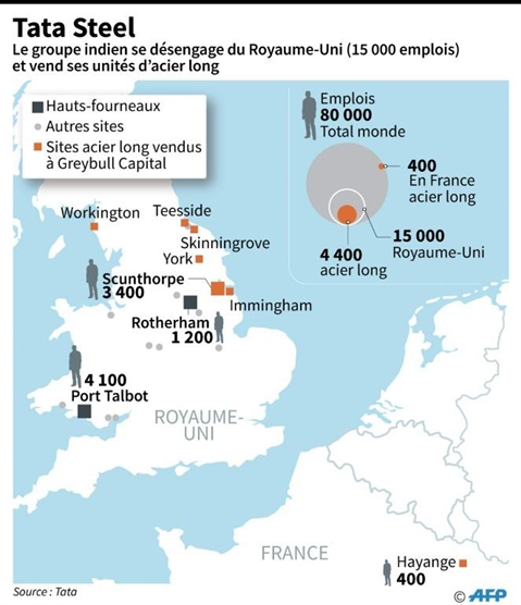 Cette division, qui comprend une usine en France, à Hayange (Moselle), et une autre dans le nord de l'Angleterre, à Scunthorpe, emploie actuellement 4.800 personnes, dont 4.400 à Scunthorpe.