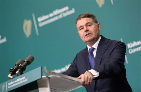 | Le ministre des Finances de l'Irlande, Paschal Donohoe, lors d'une conférence de presse à Dublin le 7 octobre. |