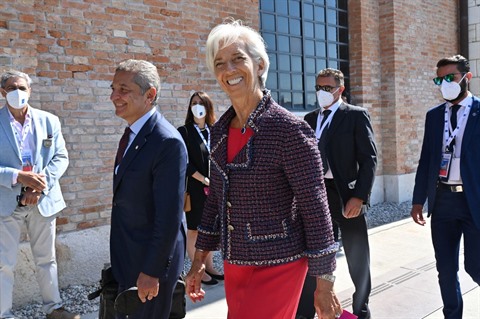| La présidente de la Banque centrale européenne Christine Lagarde arrive à Venise pour participer au G20 Finances, le 9 juillet. |