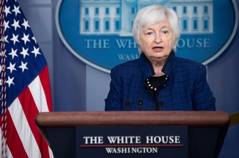 | La secrétaire américaine au Trésor, Janet Yellen, qui se rend à Venise, le 7 mai à la Maison Blanche à Washington. |