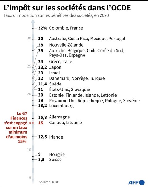 Mais les tractations continuent en coulisses pour rallier des pays récalcitrants comme la Hongrie, l'Irlande et l'Estonie qui jouent les trouble-fête et rechignent à endosser le taux d'impôt minimal mondial sur les sociétés "d'au moins 15%" prévu par l'accord.