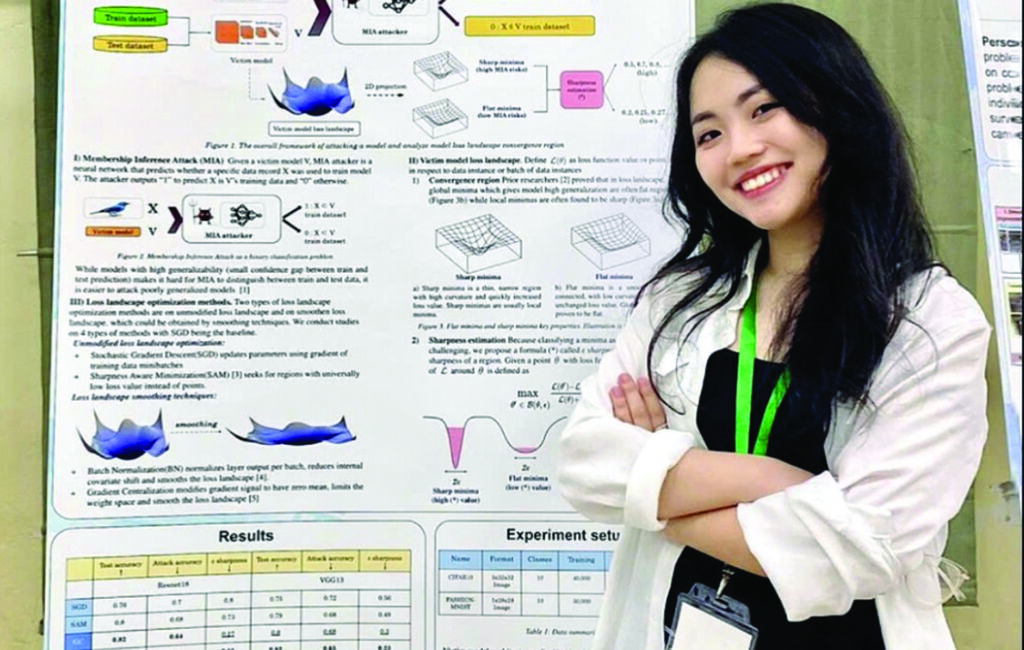 Entre autres travaux de recherche, Bao Dung est particulièrement fière de son projet portant sur la vulnérabilité des données dans les modèles d’apprentissage automatique en intelligence artificielle. Guidée par son professeur, elle a remporté avec ce projet le premier prix au sein de sa faculté. Bao Dung était la seule étudiante de deuxième année à décrocher ce prix, et elle a réalisé sa recherche de manière indépendante, à la différence des autres projets qui ont été menés en groupe.