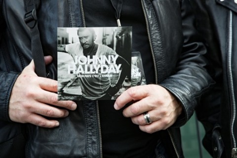 | Un homme montrant l'album de Johnny Hallyday à Paris le 15 octobre. |