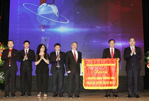 "L'Agence Vietnamienne d'Information et Vnews en particulier devraient lancer plusieurs rubriques ou programmes en langues étrangères afin de présenter l'image du pays et de son peuple aux amis internationaux, ainsi que les acquis de l’œuvre de Renouveau du pays", a-t-il souligné. À l'occasion, il a offert à VNews un drapeau dont le contenu coïncide avec sa devise "Exact, Opportun, Partout, Tout le temps, et Humain".