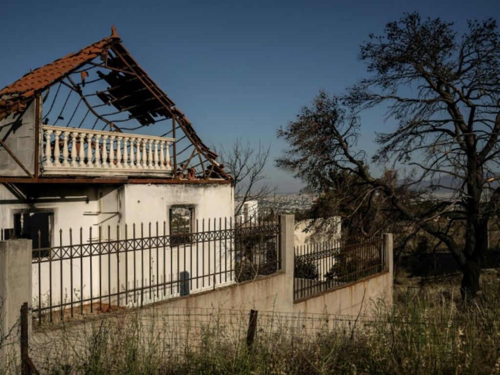| Les restes d'une maison détruite lors d'une incendies de forêt à Acharnes l'été dernier, au nord d'Athènes, le 1er juin. |