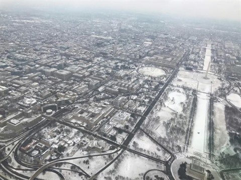 | Vue aérienne du centre de Washington sous la neige, le 4 janvier. |