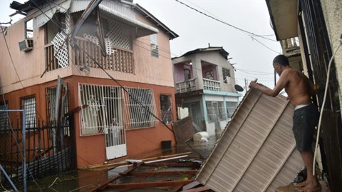 | Des habitants de San Juan, à Porto Rico, examine les dégâts causés par l'ouragan Maria, le 20 septembre. |