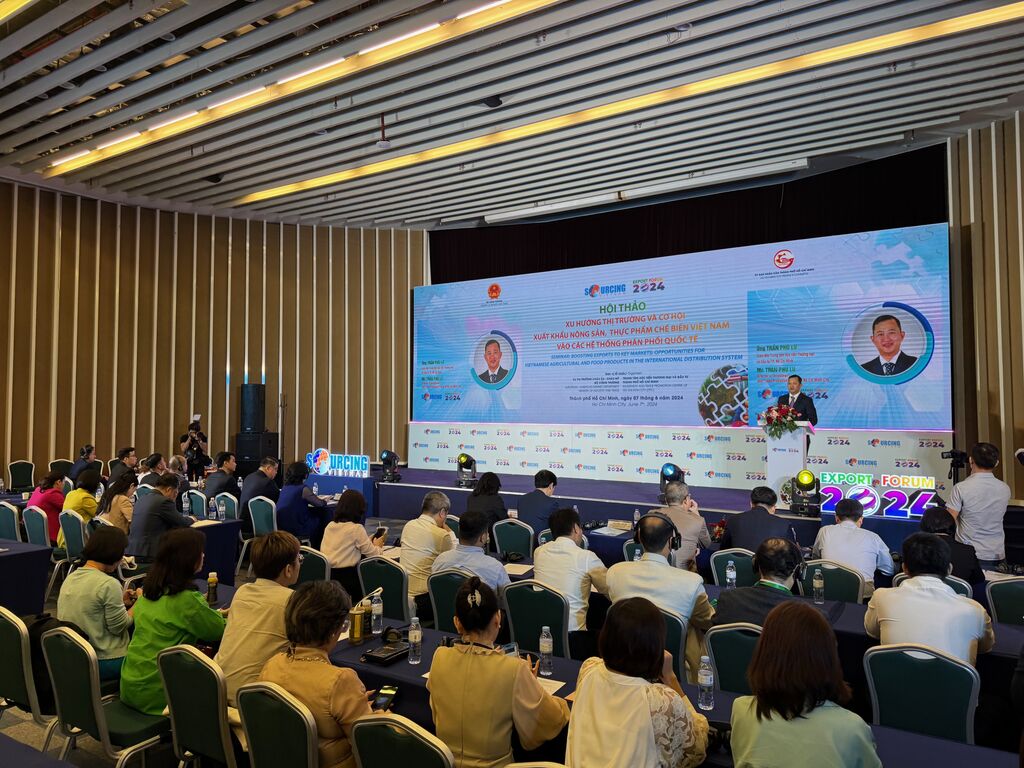 | Le colloque international “Tendances du marché et opportunités d'exporter des produits agricoles et des aliments transformés vietnamiens vers les réseaux de distribution internationaux", tenu le 7 juin dans la mégapole du Sud. |