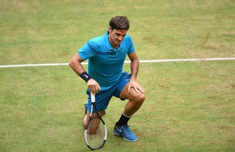 | Roger Federer battu par le Croate Borna Coric en finale du tournoi de Halle en Allemagne, le 24 juin. |