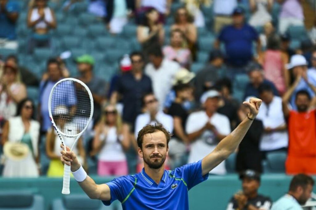 | Le Russe Daniil Medvedev s'est qualifié pour les demi-finales du tournoi ATP de Miami en battant l'Américain Christopher Eubanks en quart, le 30 mars. |