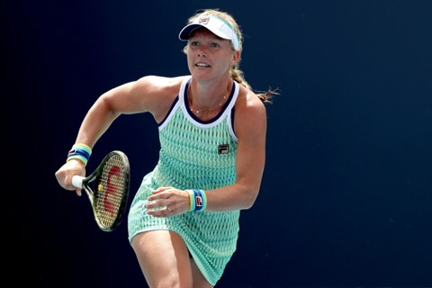 | La Néerlandaise Kiki Bertens lors de son 8e de finale du tournoi de Miami face à l'Australienne Ashleigh Barty, le 25 mars. |