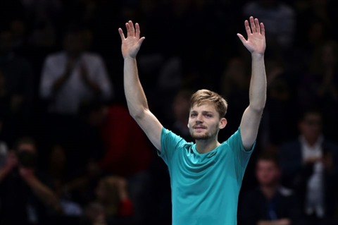 | David Goffin après sa victoire sur Roger Federer en demi-finale du Masters de Londres, le 18 novembre 2017. |