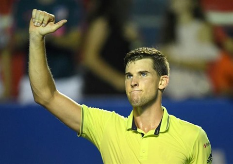 | L'Autrichien Dominic Thiem poing levé après sa victoire face au Canadien Denis Shapovalov au 2e tour du tournoi d'Acapulco, le 28 février. |