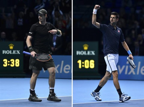 | Photomontage d'Andy Murray et Novak Djokovic, finalistes du Masters à Londres. |