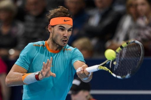 | L'Espagnol Rafael Nadal lors du tournoi de Bâle, le 24 octobre 2014. |