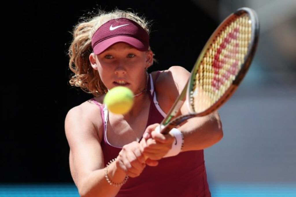 | La Russe Mirra Andreeva en 8e de finale du tournoi de Madrid contre la Bélarusse Aryna Sabalenka, le 1er mai. |
