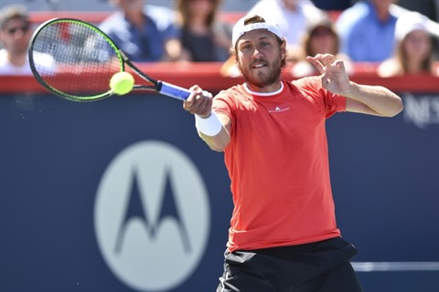 | Le Français Lucas Pouille contre le Canadien Milos Raonic au tournoi de Montréal, le 5 août. |