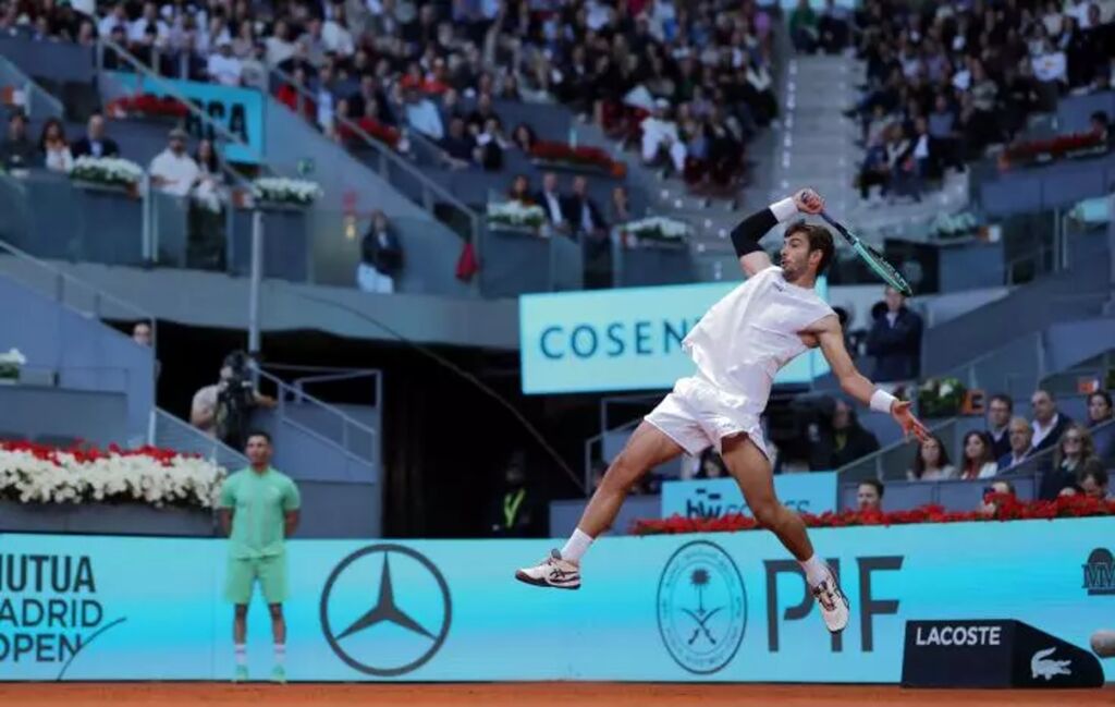 | L'Italien Lorenzo Musetti lors de sa demi-finale du Masters 1000 de Madrid face au Britannique Jack Draper le 2 mai. |