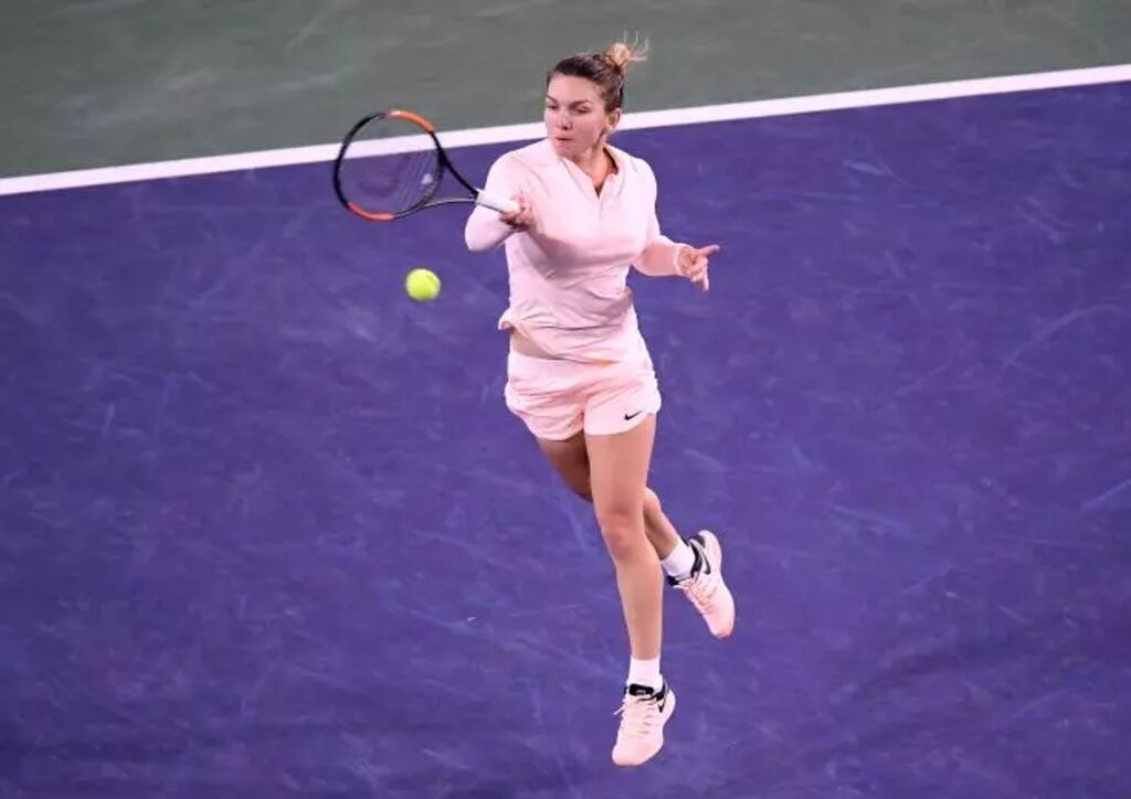 | La Roumaine Simona Halep, ancienne numéro un mondiale, lors d'un match contre la Japonaise Naomi Osaka au Masters 1000 d'Indian Wells. |