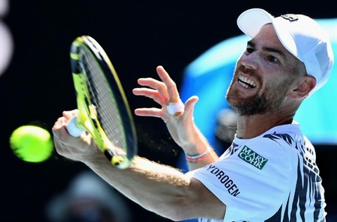 | Adrian Mannarino lors de l'Open Sud de France, à Montpellier, le 12 février. |