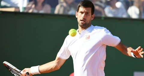 | Le Serbe Novak Djokovic face au Belge David Goffin en quarts de finale du Masters 1000 de Monte-Carlo, le 21 avril 2017. |