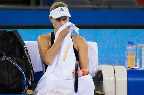 | L'Allemande Angelique Kerber battue par l'Australienne Ashleigh Barty à Wuhan, le 26 septembre. |