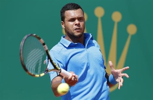 | Jo-Wilfried Tsonga au 2e tour de l'Open de Monte-Carlo contre l'Allemand Philipp Kohlschreiber, le 15 avril à Monaco |