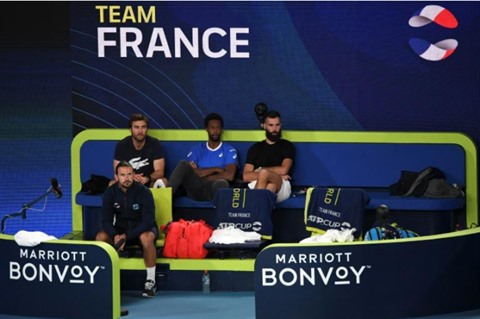| Les membres de l'équipe de France lors d'un match de la dernière ATP Cup à Melbourne, le 5 février 2021. |