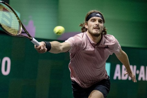 | Stefanos Tsitsipas contre Jiri Lehecka en demi-finale du tournoi de Rotterdam, le 12 février. |