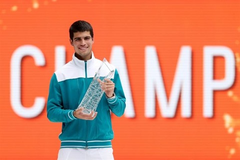 | Le prodige espagnol Carlos Alcaraz, vainqueur du Masters 1000 de Miami, le 3 avril. |