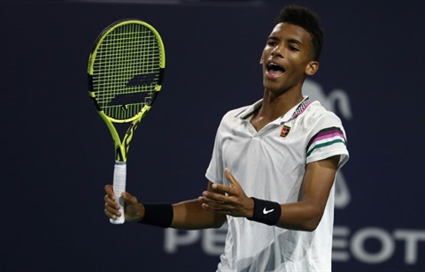| Le Canadien Félix Auger-Aliassime lors de sa victoire contre le Croate Borna Coric à Miami, le 27 mars. |