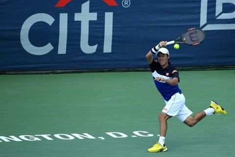 | Kei Nishikori lors de son match contre Marin Cilic à Washington, le 8 août. |