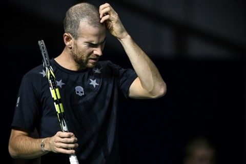| Le Français Gaël Monfils battu en finale du tournoi d'Anvers par le Britannique Kyle Edmund le 21 octobre. |