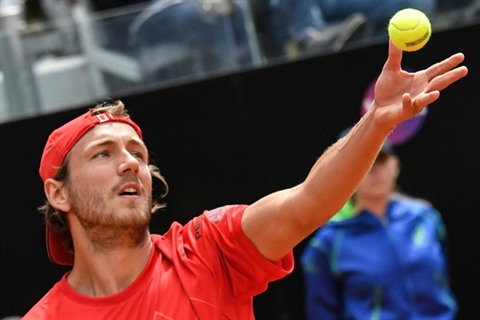 | Le Français Lucas Pouille contre l'Italien Andreas Seppi au tournoi de Rome, le 15 mai. |