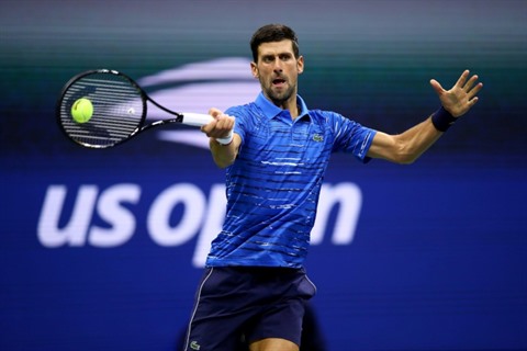 | Le Serbe Novak Djokovic lors de son 2e tour de l'US Open face à l'Argentin Juan Ignacio Londero, à Flushing Meadows, le 28 avril 2019. |