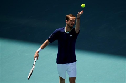 | Le Russe Daniil Medvedev face à l'Espagnol Pedro Martinez, à Miami, le 28 mars. |