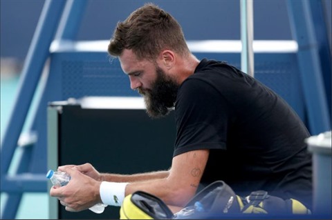 | Le Français Benoît Paire, pendant une pause lors de son match contre l'Italien Lorenzo Musetti, le 27 mars 2021 au Masters 1000 de Miami. |