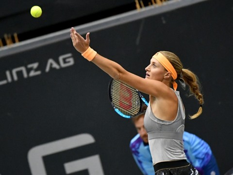 | La Française Kristina Mladenovic au tournoi de Linz (Autriche), le 8 octobre. |