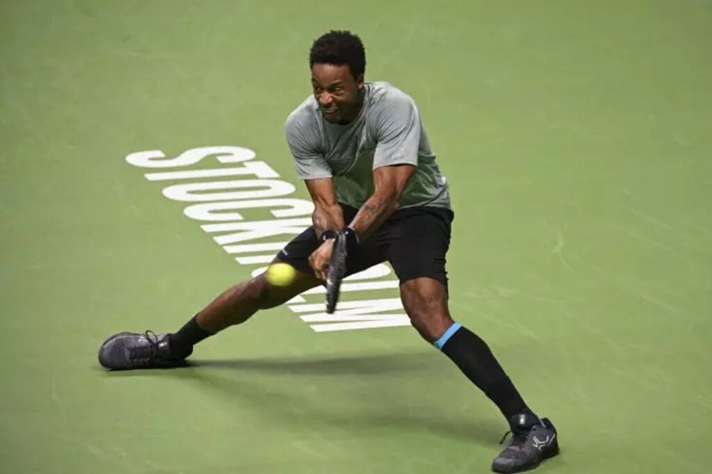 | Le Français Gaël Monfils lors de son quart de finale victorieux face à Adrian Mannarino au tournoi ATP 250 de Stockholm, le 20 octobre 2023. |