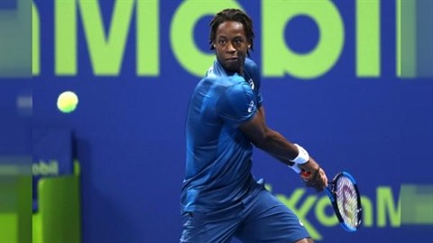 | Le Français Gaël Monfils lors de son quarts de finale du tournoi de Doha contre l'Allemand Peter Gojowczyk, le 4 janvier 2018. |
