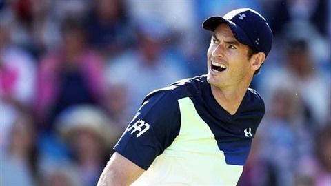 | Le Britannique Andy Murray face à son compatriote Kyle Edmund au 2e tour du tournoi d'Eastbourne (Angleterre), le 27 juin. |
