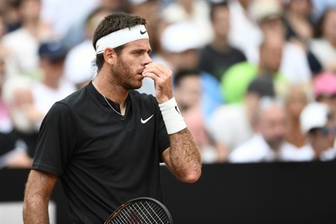 | L'Argentin Juan Martin del Potro avant son abandon durant le match contre David Goffin à Rome, le 17 mai. |