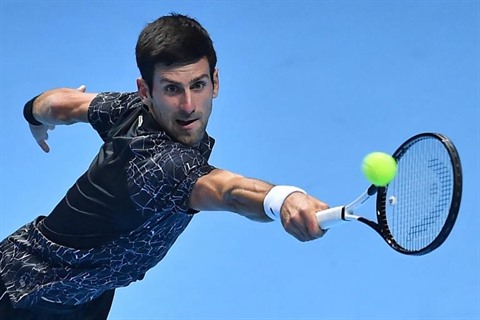| Le Serbe Novak Djokovic face à l'Allemand Alexander Zverev lors du Masters, le 18 novembre à Londres. |