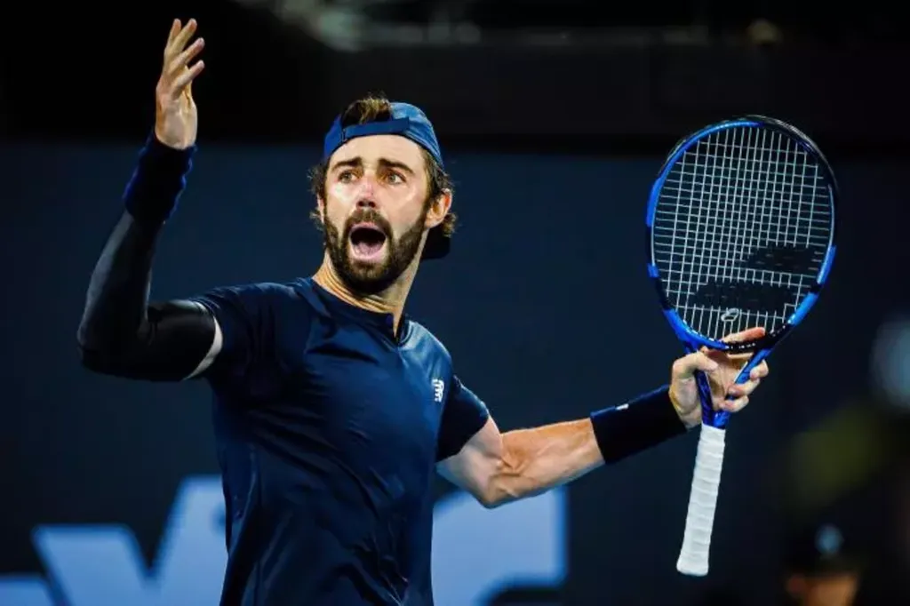 | Le joueur de tennis australien Jordan Thompson lors de sa victoire contre l'Espagnol Rafael Nadal en quart de finale du tournoi ATP de Brisbane à Brisbane, en Australie, le 5 janvier. |