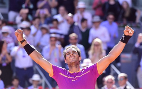 | L'Espagnol Rafael Nadal après sa victoire en demi-finale du tournoi de Madrid face au Serbe Novak Djokovic, le 13 mai 2017. |