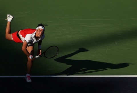 | La Tunisienne Ons Jabeur pendant la rencontre contre l'Américaine Danielle Collins lors du 3e tour du tournoi d'Indian Wells, en Californie le 11 octobre. |