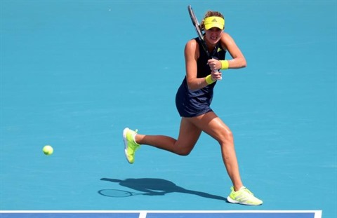 | Kristina Mladenovic, lors du tournoi de Miami, le 24 mars. |