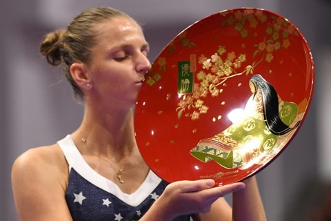 | La Tchèque Karolina Pliskova remporte son 11e titre WTA en battant la Japonaise Naomi Osaka, à Tokyo, le 22 septembre. |