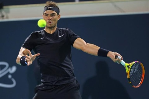 | L'Espagnol Rafael Nadal au cours de la demi-finale du tournoi de Dubai, le 17 décembre 2021. |