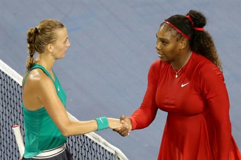 | La Tchèque Petra Kvitova (gauche) serre la main de Serena Williams après sa victoire face à l'Américaine au tournoi de Cincinnati (Ohio), le 14 août. |